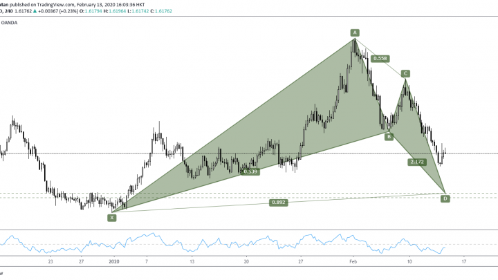 Feb 13 2020 (EP #39) Kelvin 交易策略 – EURAUD 蝙蝠形态 2020-02-13在四小时图中, 有一个牛势的蝙蝠形态快要完成。 它提供的反转区间是在1.60330至 1.60170之间。
