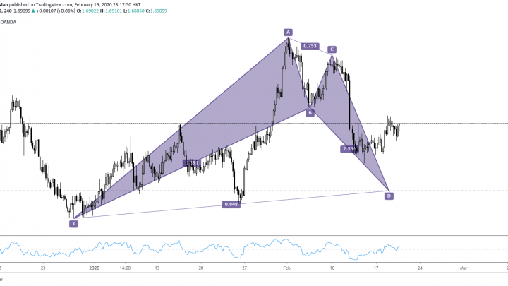Feb 19 2020 (EP #43) Kelvin 交易策略 – EURNZD 蝙蝠形态 2020-02-19在四小时图中, 有一个看涨的蝙蝠形态, 它带来的反转区间是在1.67020至 1.66800之间。