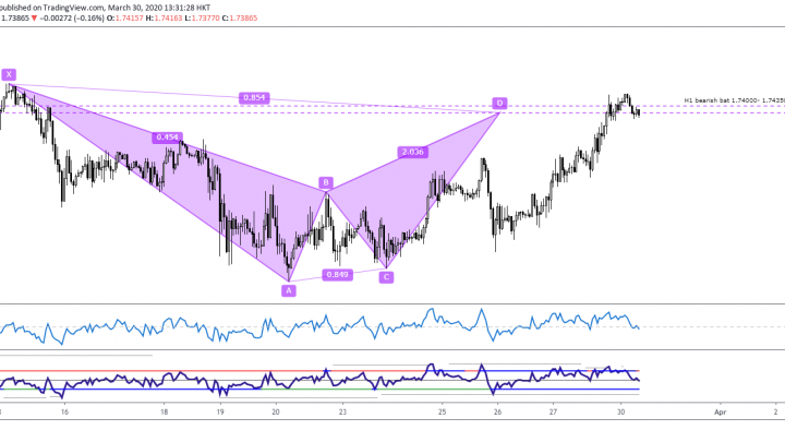 Mar 30 2020 (EP#71) Kelvin 交易策略 GBPCAD 蝙蝠形态 2020-03-30在一小时图中, 有一个熊势的蝙蝠形态已经形成, 它带来的反转区间是在1.74350- 1.74000。