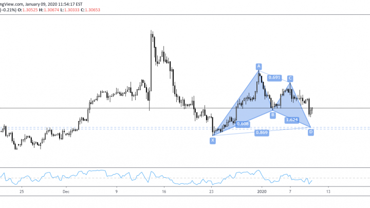 在日线图中, 市场很清楚显示是处于上升走势。 同时间, 有一个牛势的蝙蝠形态出现在四小时图中, 它提供的反转区间是在1.29530至1.29430之间。